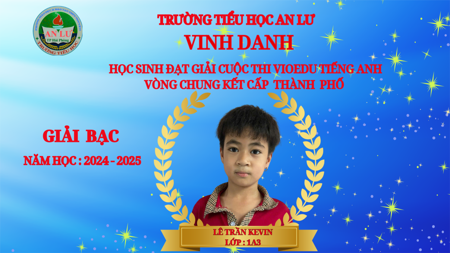 1. Giải Bạc: Em Lê Trần KEVIN - Lớp 1A3.