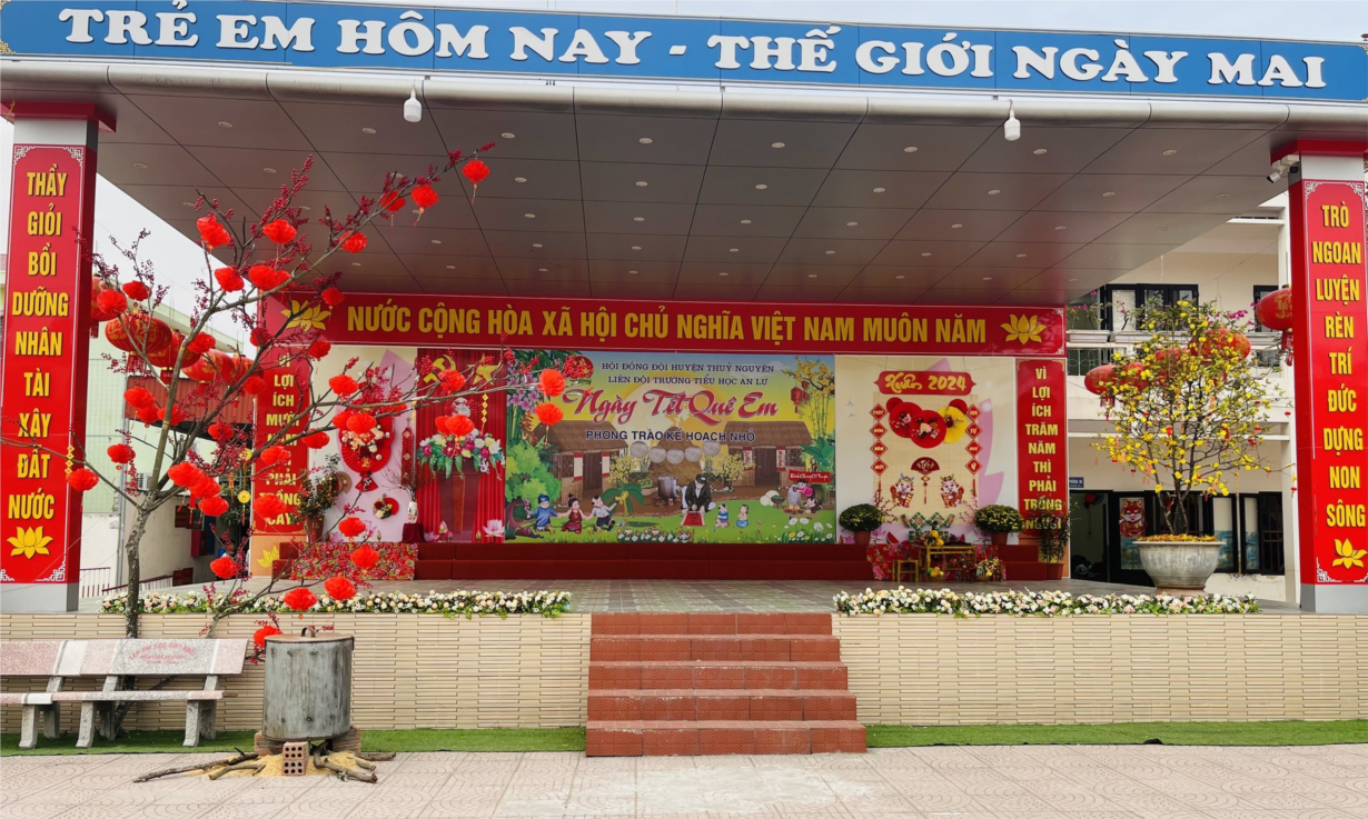 Hòa chung không khí chuẩn bị Tết Nguyên đán Giáp Thìn với không khí nhộn nhịp trên khắp quê hương Liên đội trường Tiểu học An Lư rộn ràng các hoạt động chào đón năm mới. Với những hình ảnh quen thuộc của ngày Tết Việt Nam cành đào, cành mai, bánh chưng xanh, dưa hấu đỏ, những chậu hoa cúc vàng rực......thể hiện khá sinh động. Qua đó học sinh cảm nhận được khoảnh khắc của ngày Tết đang tới dần, một mùa xuân mới, niềm vui hứng khởi, mỗi ngày đến trường.
