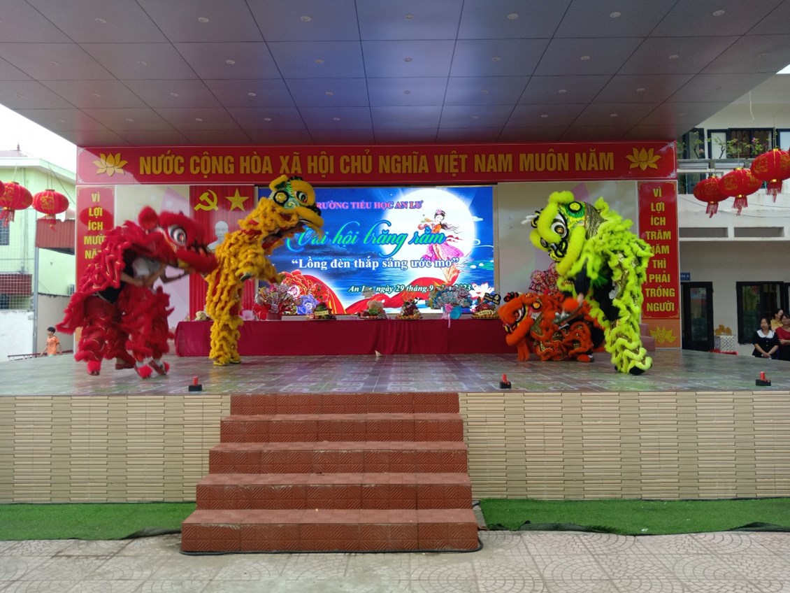 Thực hiện KH số 63/KH - HĐĐ Thành phố ngày 01/08/2023, kế hoạch số 29/KH- HĐĐ Huyện Thủy Nguyên ngày 24/08/2023. Chiều ngày 29/09/2023 Liên đội trường Tiểu học An Lư long trọng tổ chức chương trình " Vui hội trăng rằm với chủ đề " Lồng đèn thắp sáng ước mơ" năm học 2023 -2024. Nhằm tạo sân chơi lành mạnh trong các buổi ngoại khóa, giúp các em hiểu được ý nghĩa của ngày Tết trung thu , có chị hằng, chú cuội, bánh nướng, bánh dẻo, múa lân............ tạo môi trường tốt nhất để các em hoạt động vui chơi, rèn luyện, trưởng thành, phấn đấu trở thành con ngoan trò giỏi cháu ngoan Bác Hồ.