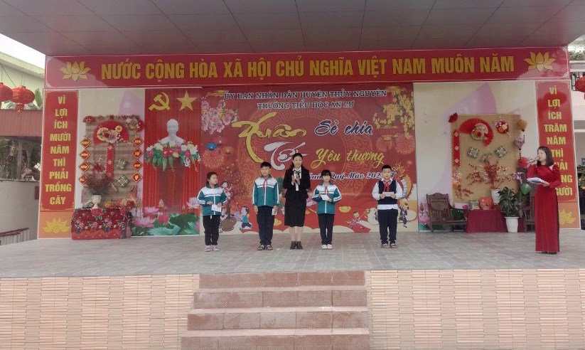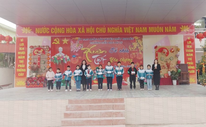 Thực hiện chương trình năm học 2022 -2023 , Ngày 16/01/2023 Liên đội trường Tiểu học An Lư tổ chức chương trình Xuân sẻ chia - Tết yêu thương và chương trình sơ kết học kì I. Nhằm đánh giá và tuyên dương các hoạt động chương trình, phong trào trong học kì I, và động viên sẻ chia giúp đỡ 70 em có hoàn cảnh đặc biệt khó khăn trong Liên đội đến dự với chương trình có Ông (bà) Trần Văn Nho, Trịnh Thị Lâm tặng 30 xuất quà cho các em có hoàn cảnh khó khăn, Đại diện Hội cha mẹ học sinh trường Bà : Bùi Thị Huyền Trang, đại diện BGH nhà trường có cô Đào Thị Tuyết - Bí thư chi bộ Hiệu trưởng nhà trường, cô Nguyễn Thị Hương Lan, Cô : Đoàn Thi Diệp - Phó Hiệu Trưởng nhà trường cùng các thầy cô giáo trong hội đồng sư phạm, và 1.338 học sinh toàn trường có mặt đông đủ