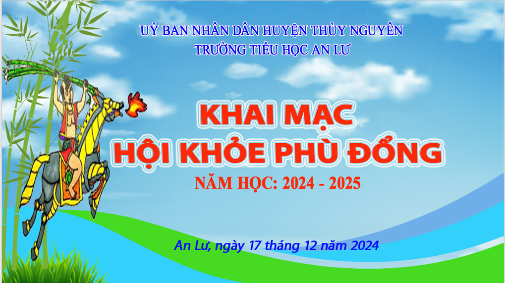 Sáng ngày 17/12/2024, Trường Tiểu học An Lư đã tổ chức lễ khai mạc Hội khỏe Phù Đổng năm học 2024 - 2025. Trong không khí vô cùng sôi động. Ngay từ sáng sớm, sân trường đã rnhộn nhịp bởi tiếng cổ vũ nhiệt tình của các em học sinh.